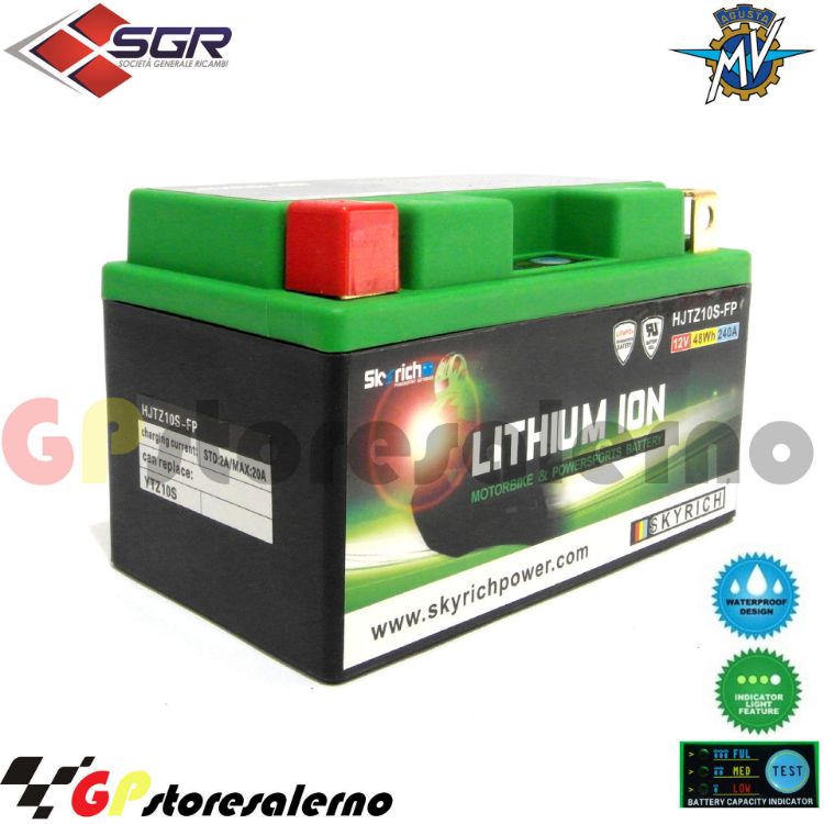 0675010SR BATTERIA A LITIO SKYRICH POTENTE EQUIVALENTE YTZ10S MV AGUSTA 800 RIVALE DAL 2013 AL 2015