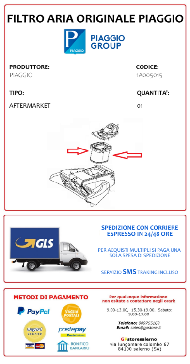 1A005015 FILTRO ARIA ORIGINALE PIAGGIO 150 LIBERTY E5 DAL 2020 AL 2022