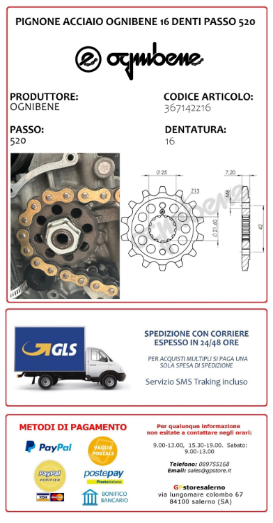 367142Z16 PIGNONE OGNIBENE RACING ALLEGGERITO IN ACCIAIO PASSSO 520 Z 16 PER TRIUMPH 675 DAYTONA R DAL 2011 AL 2012