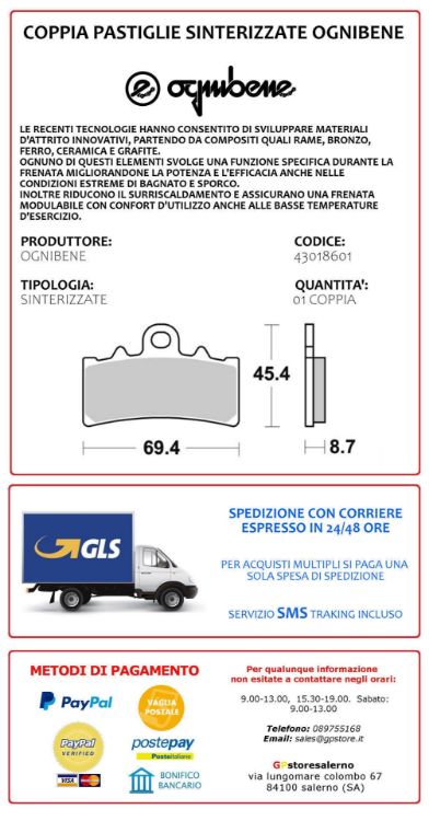 COPPIA PASTIGLIE SINTERIZZATE OGNIBENE