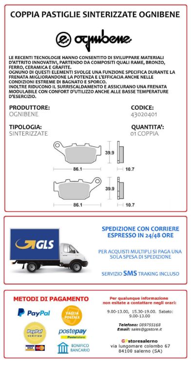 COPPIA PASTIGLIE SINTERIZZATE OGNIBENE