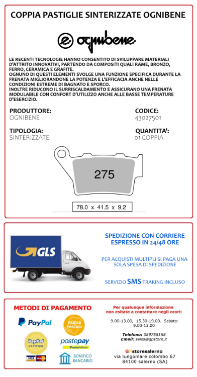 COPPIA PASTIGLIE SINTERIZZATE OGNIBENE