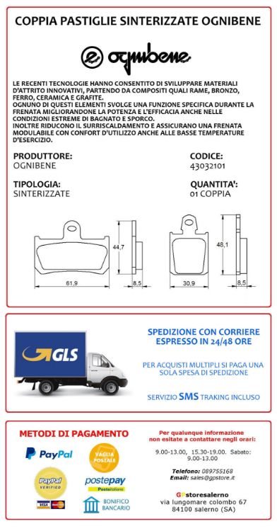 COPPIA PASTIGLIE SINTERIZZATE OGNIBENE