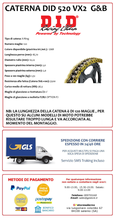 NB: LA LUNGHEZZA DELLA CATENA E' DI 120 MAGLIE, PER QUESTO SU