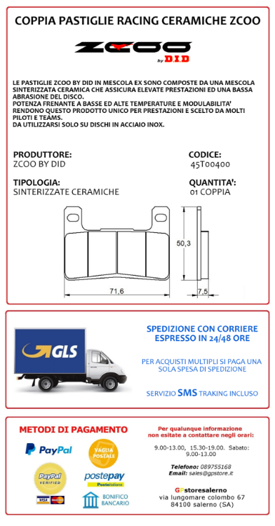 LE PASTIGLIE ZCOO BY DID IN MESCOLA EX SONO COMPOSTE DA UNA MESCOLA SINTERIZZATA CERAMICA CHE ASSICURA ELEVATE PRESTAZIONI ED UNA BASSA ABRASIONE DEL DISCO.